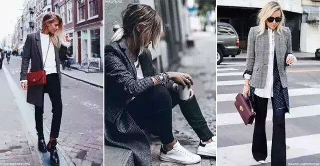 踩高跟鞋不舒服,下了班可以换上运动鞋,大衣与运动元素的混搭绝对是高街的典范。
