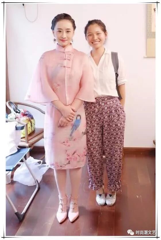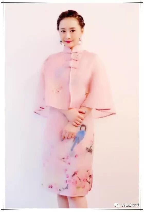 依旧是浅粉色的裙子,充满中国风的设计十分的大气,将旗袍稍作改良,充满民国风和现代风的感觉,而且不得不说女神驾驭起来粉色简直不要太过相配呀。很柔美。