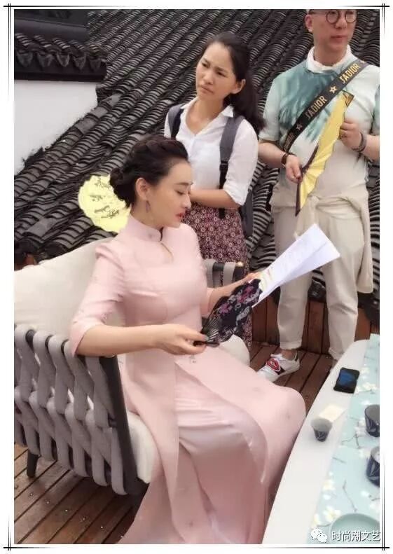 一袭粉色的旗袍很是大气端庄,气质简直不要太好呀,而且女神的颜值这么多年都没有什么变化,感觉像是打了防腐剂一样呀。实在是美的让人羡慕呢,魅力值UP.