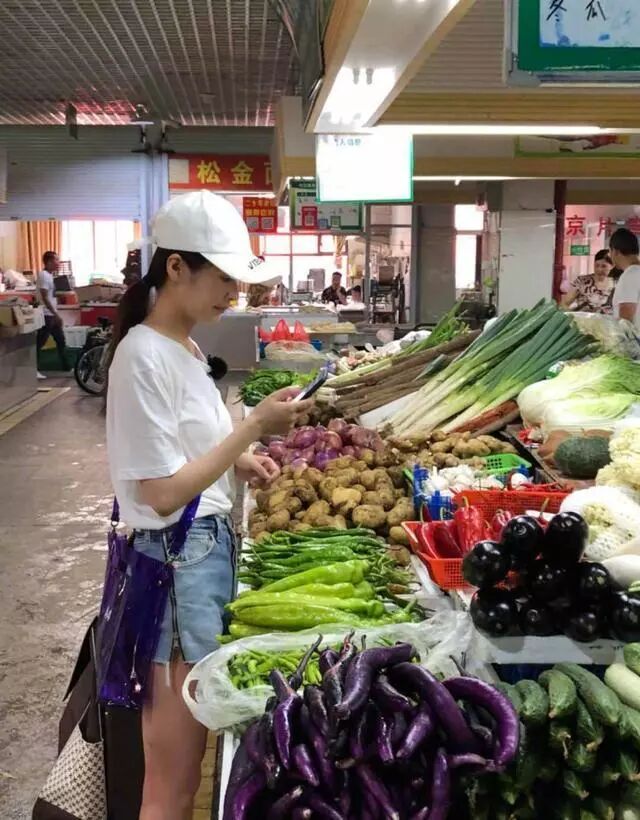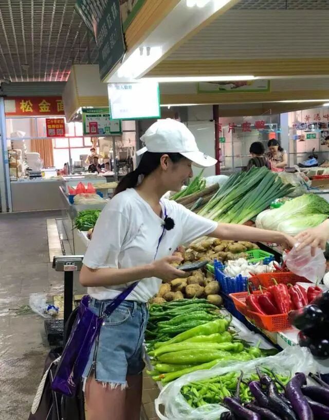 还有颖儿在菜场买菜的照片,照片中颖儿正在挑选蔬菜,认真的样子简直暴露了她贤妻的本性了。