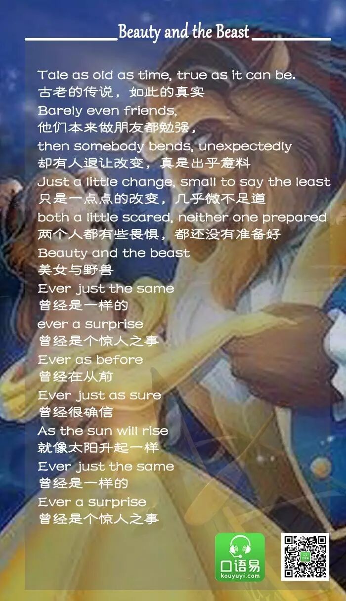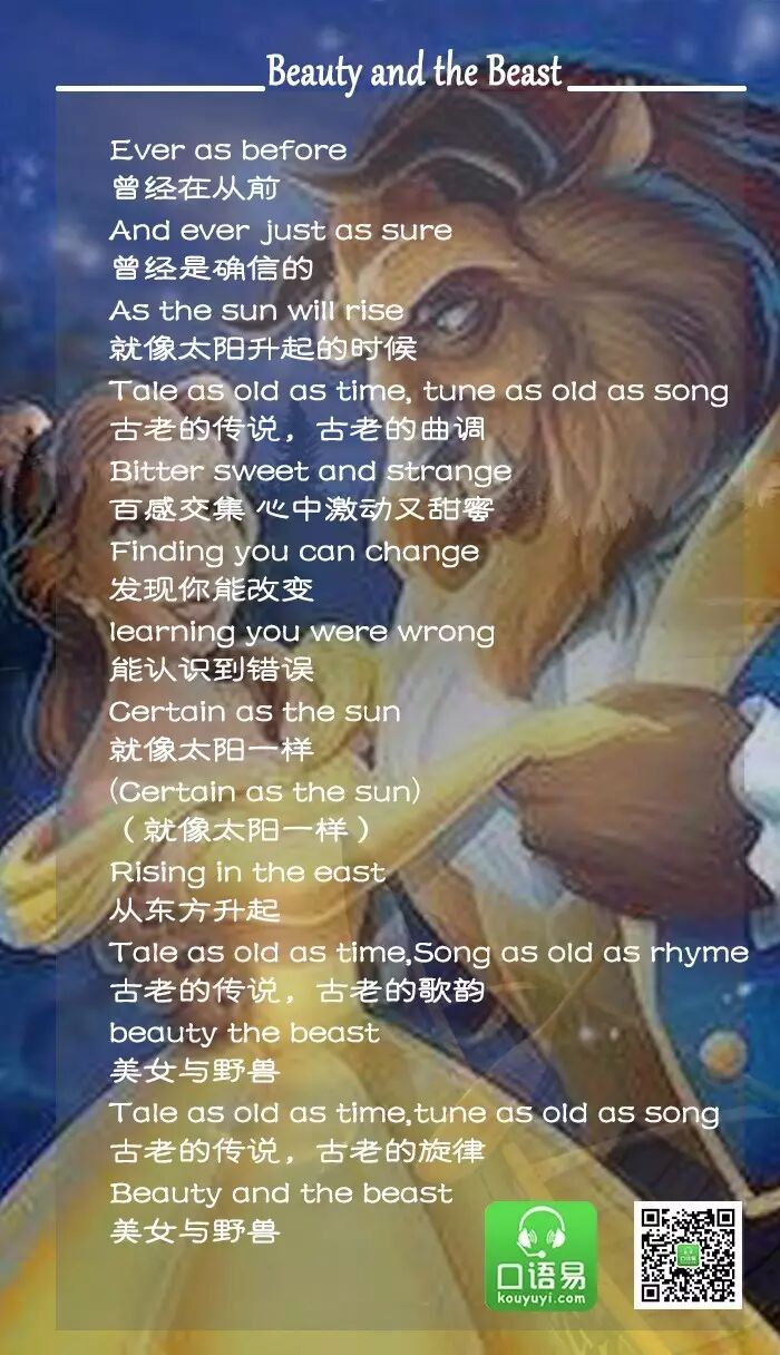 Beauty and the Beast is a 1991 American animated(动画的) musical romantic(浪漫的) fantasy(科幻) film produced by Walt Disney Feature Animation.Beauty and the Beast focuses on the relationship(浪漫关系) between the Beast,a prince(王子) who is magically transformed into a monster(怪兽) as punishment for his arrogance(傲慢),and Belle,a beautiful young woman whom he imprisons(囚禁) in his castle. To become a prince again, Beast must win her love in return(作为回报) .Otherwise(否则), he remains a monster forever.