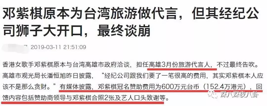 NONONO,19年4月的高雄巡演,当地市政府想配合宣传请邓紫棋当旅游大使,也被耍大牌光环吓回去了