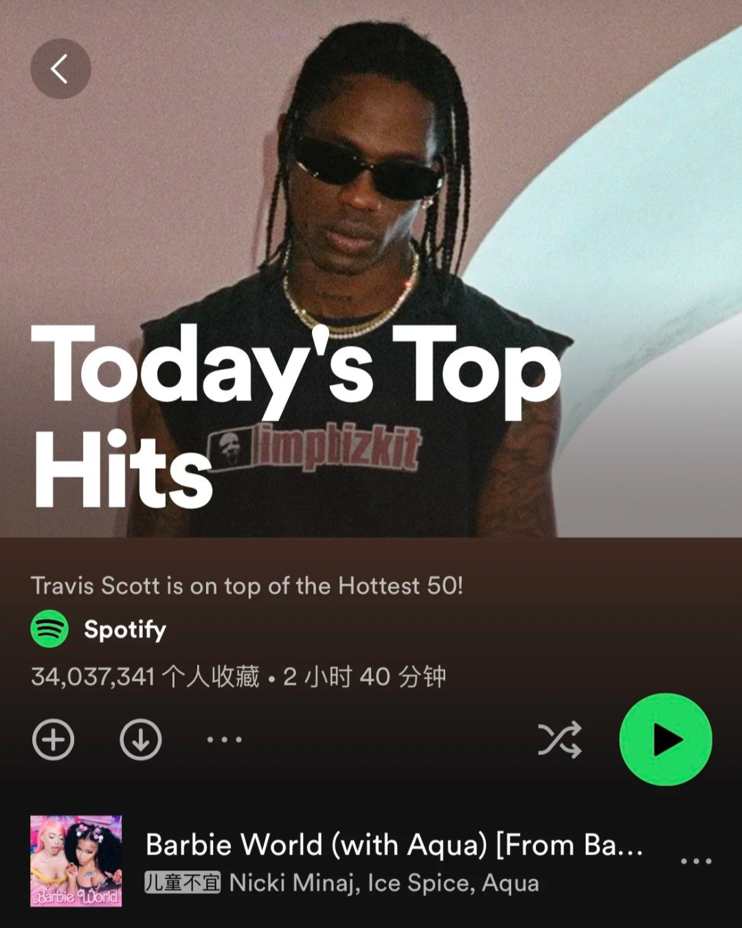 对于这首新单曲的大火,Nicki Minaj乐见其成,并希望其能够在美国夺冠。为此,她在Spotify平台上大规模购买列表宣传,目的是让更多人听到这首歌曲的美妙之处。如今,这首《Barbie World(with Aqua)[From Barbie The Album]》已经在Spotify最大的音乐列表“Today's Top Hits”中排名第一位。该列表有3400万用户收藏,知名度和流量都非常高。