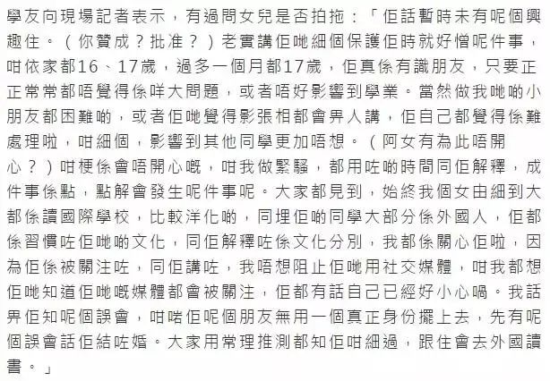女儿16岁,虽说歌神也没反对早恋,但是却有媒体指出,这个男模特其实已婚,不过男方后来又有澄清说是单身。歌神采访时也替女儿澄清:女儿下个月就17岁了,如果她真的有认识朋友也很正常。她现在明白了娱乐圈下一代压力大,发一张照片都会被人说。她从小到大都读国际学校,比较洋化,现在她懂得了自己会受到媒体的关注,自己以后会小心一点。