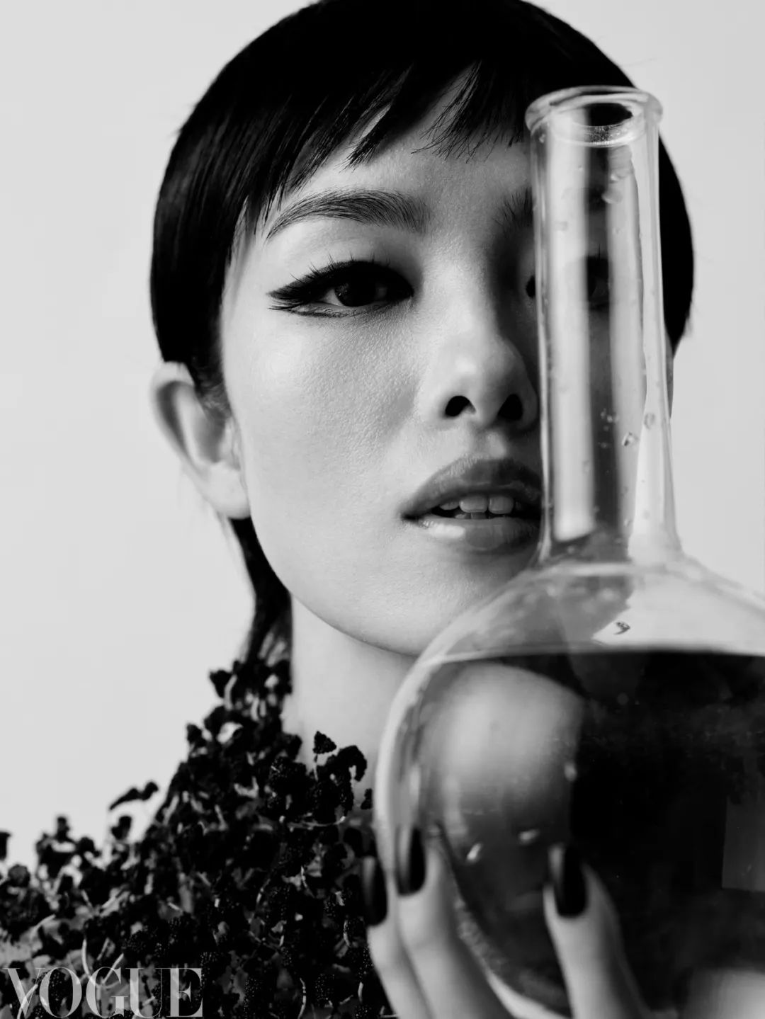 踩在事先准备好的苹果箱上,孙菲菲轻轻一使力,顺势坐在巨大的椅子道具上。发型师迅速上前,为她理顺略有些凌乱的发丝。孙菲菲低头调整状态,慢慢看向镜头,此刻一束聚光刚好打在她的脸上,那双我们再熟悉不过的小鹿般的眼眸,不论时隔多久仍然清澈依旧。