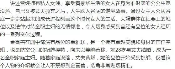 该剧讲述了原本过着上流社会奢华生活的女主人公因丈夫的背叛而一夜间跌入人生谷底的故事