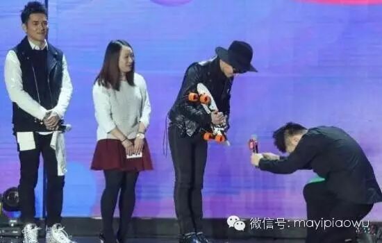 杜海涛也曾在某颁奖盛典上,因为难掩见到偶像GD的激动心情,以至下跪献花,完全失控,还引来了非议。