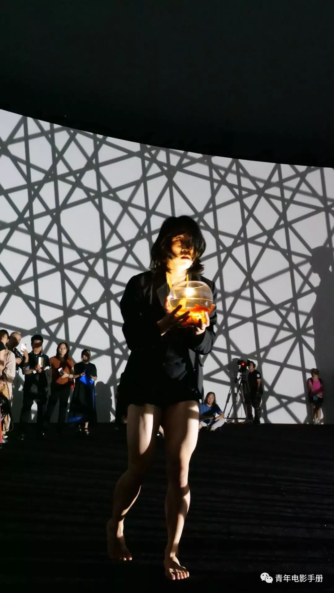因此我也无法说明她遵循的是什么舞蹈流派,我只能在她舞动的时候看到试图挣脱她身体框架的的血液和筋骨,尤其是在今天,在这个装置艺术中,正如她自己形容的,她觉得整个宇宙都在看着她舞蹈。那么让我们一起来品尝这场身体与装置的艺术宴席。