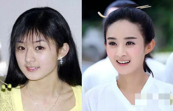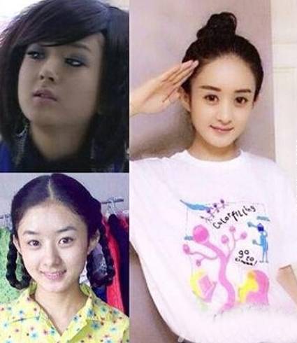 早年的赵丽颖和《花千骨》中的赵丽颖。