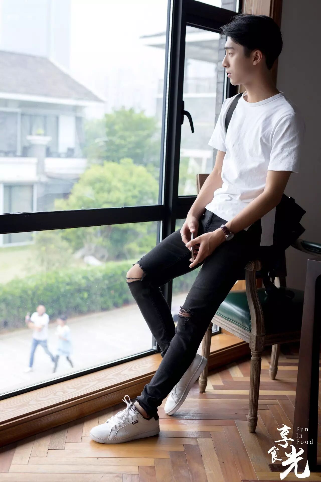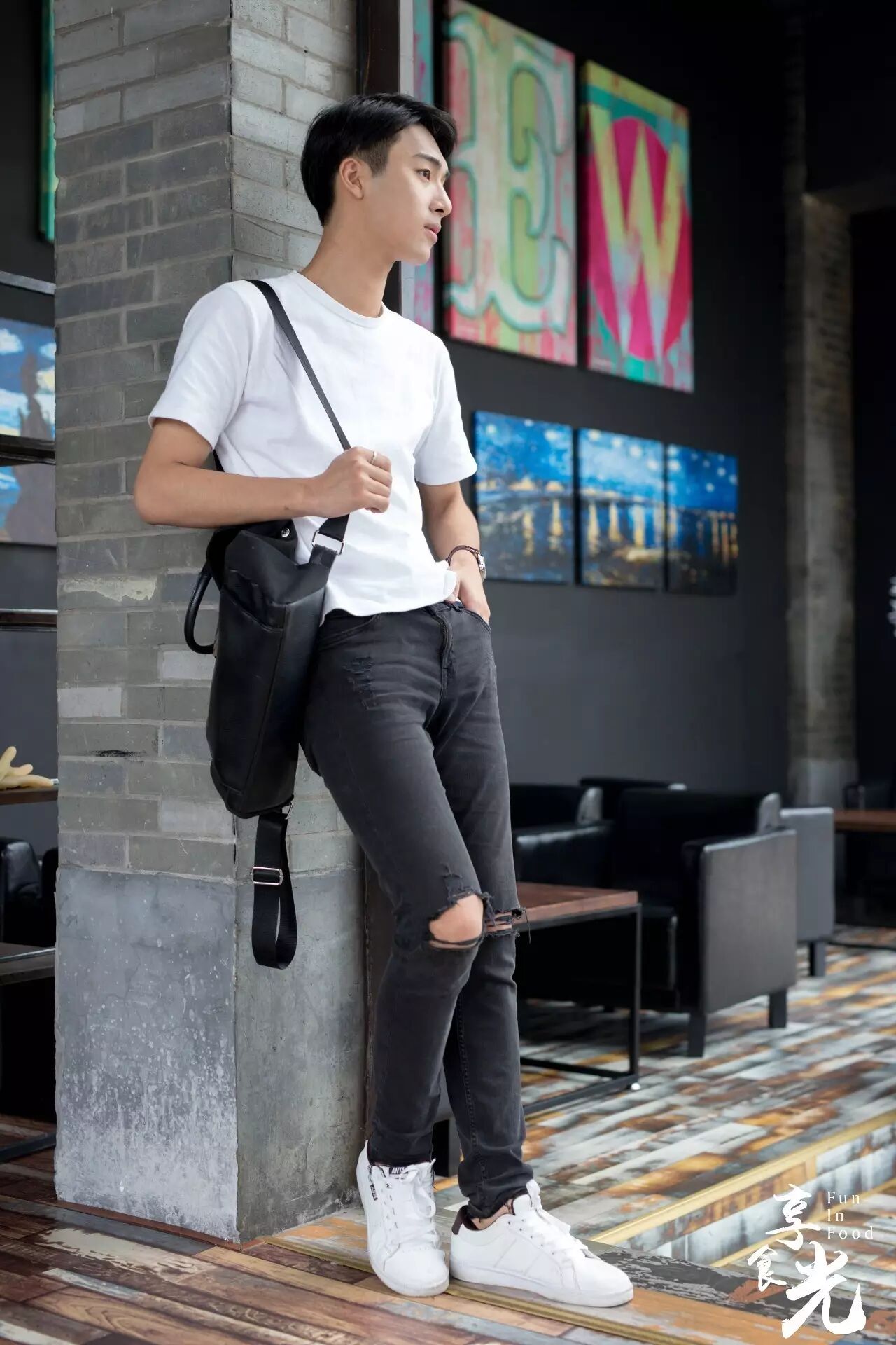 白T+牛仔裤,看起来很干净,很阳光,本人长的跟井柏然非常像!!!