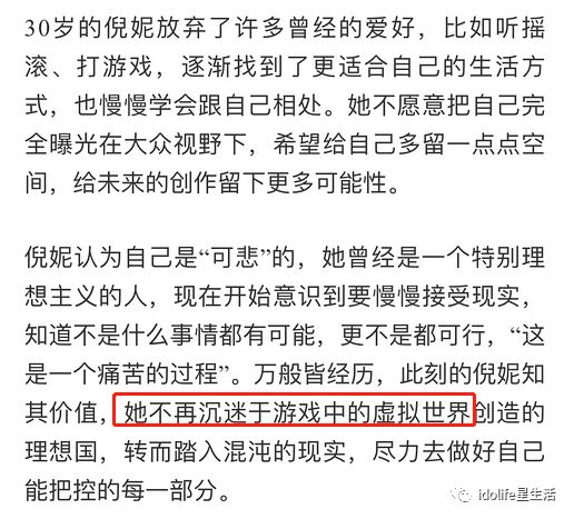 提到自己不想再沉迷于游戏世界,要慢慢接受现实。