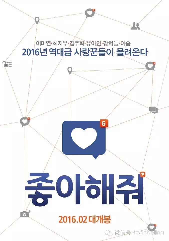 李美妍,刘亚仁,金柱赫,崔智友,姜河那,李絮群星云集电影《请喜欢我》(暂译)经过几番更名,正式敲定2016年2月韩国公映。