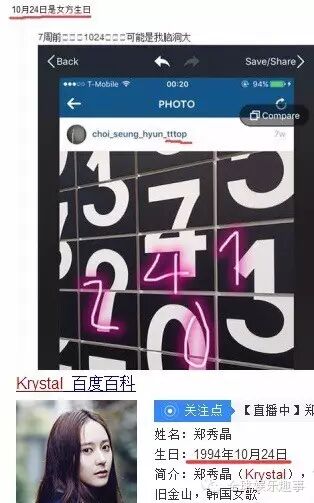 韩国某网站,一篇名为"T.O.P&Krystal新情侣"的文章备受大家的关注。在公开的帖子中,该网友公开了T.O.P在两周前上传过的一张照片,并称今年Krystal也曾公开过同样景色的照片。在二人的在照片中,出现了相同的建筑,网友还用蓝色圆圈进行放大。