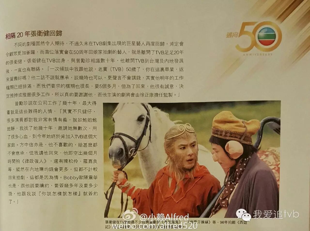 离开TVB足足20年的张卫健 ,确定2017年TVB50周年回娘家拍剧,徐正康监制,拍摄时长:5个多月
