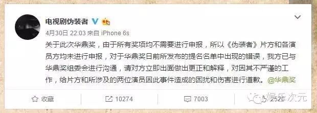 5月1日,顶不住压力的华鼎奖也终于出来给了个“说法”: