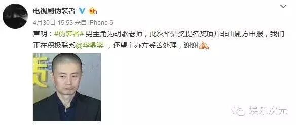 面对扑天盖地的指责,王凯同学只觉得宝宝心中苦,为啥?华鼎奖这奖项人家根本就没有报过名!于是工作室和沉寂了很久的《伪装者》官方迅速出来辟谣。言下之意不外乎是:正宫还是姓胡啊,小主他也是冤枉的啊。