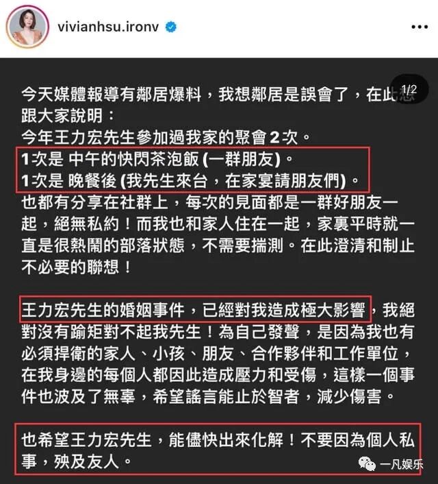 12月18日,徐若瑄发文予以否认,并喊话王力宏,希望他能够出面发声,不要因个人私事,殃及友人。