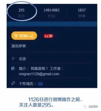 只不过罗晋前天登录微博,取关了三个账号,原来罗晋的关注有295个,现在是292个↓