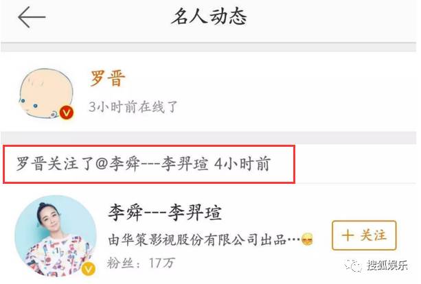 不光如此,就在罗晋关注了李舜之后,有网友去李舜微博看,发现了一件更了不得的事情……