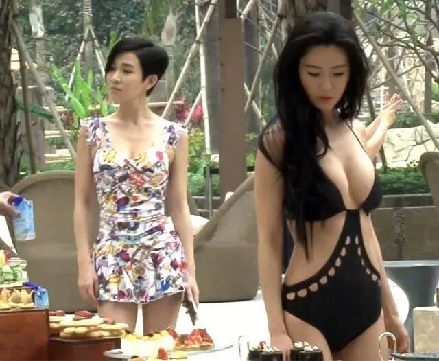 原来她是韩国性感女星Clara李成敏,全程以黑色性感泳装示人,大秀丰满身材。