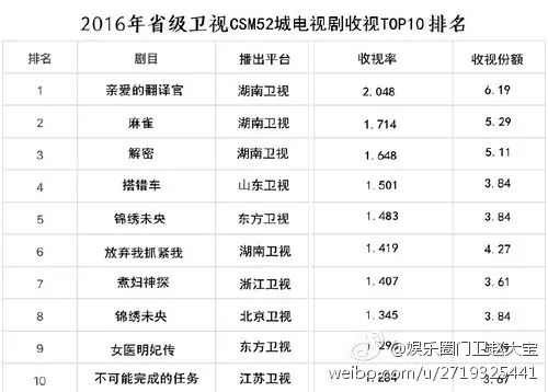 这部剧淘小最没看,不予置评~此剧收视率超越《锦绣未央》,看来抗日剧依然是国剧中的扛把子~~~