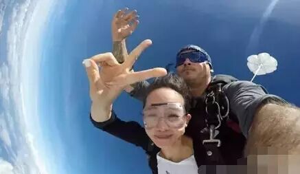 高空跳伞,风把脸吹的变形,她却依旧笑靥如花,为自己又完成list的一项欢呼。