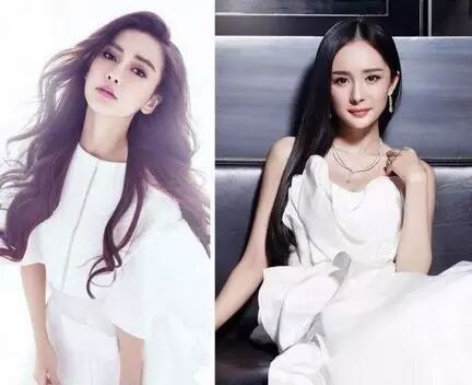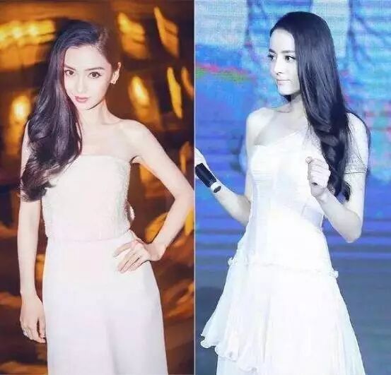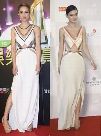 白色的V领长裙,蔡依林穿上后会显得健壮,本来娇小的身材已被掩盖:而杨颖则穿出了仙女风范。