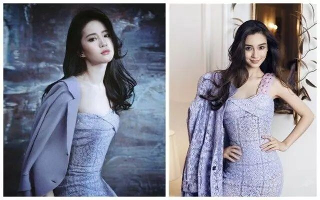 同样是紫色的套装裙穿在她们身上,从设计上看刘亦菲穿起来会更显气质,过多的修饰不会是大众喜爱的口味,杨颖的长裙设计显得有点累赘,感觉气质已经不在线。