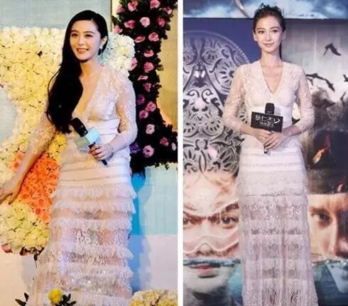 作为时尚界宠儿的范冰冰,撞上上同样穿白色蕾丝裙的杨颖,美貌惊艳四座的两位大咖,范冰冰深v设计凸显出傲人的身材曲线,下摆透视的设计也让大长腿若隐若现,侧分的大波浪让范冰冰看起来十分有女人味,虽然霸气十足却略显臃肿,杨颖的扎法简单有美感,白色长裙更是显出她纤瘦苗条的好身材,优雅有气质。