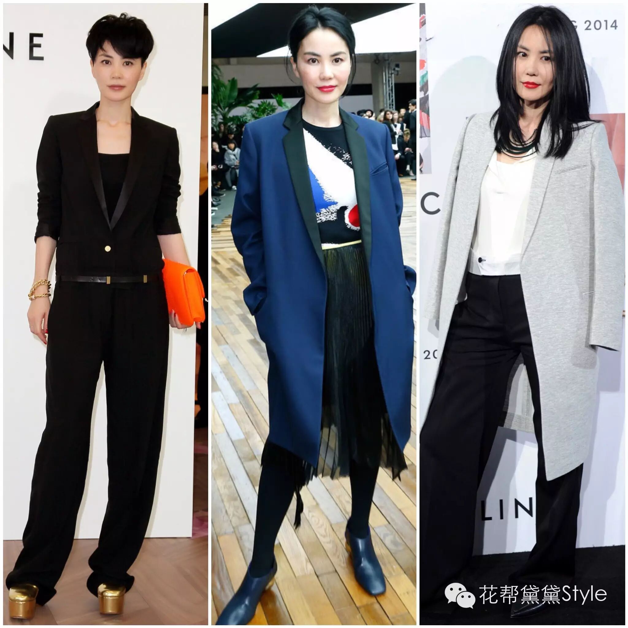 但大多数人不同,她并不热衷于笑脸包和秋千包,而是自始至终,挚爱Celine家的衣服。早从2004年开始,王菲就出现在Celine的秀场上,直到2014的秋冬秀她依然还坐在前排看秀。还记得《时尚芭莎》8月刊上王菲那组硬照简直就是Celine的当季型录,穿得一点不比麻豆效果差。