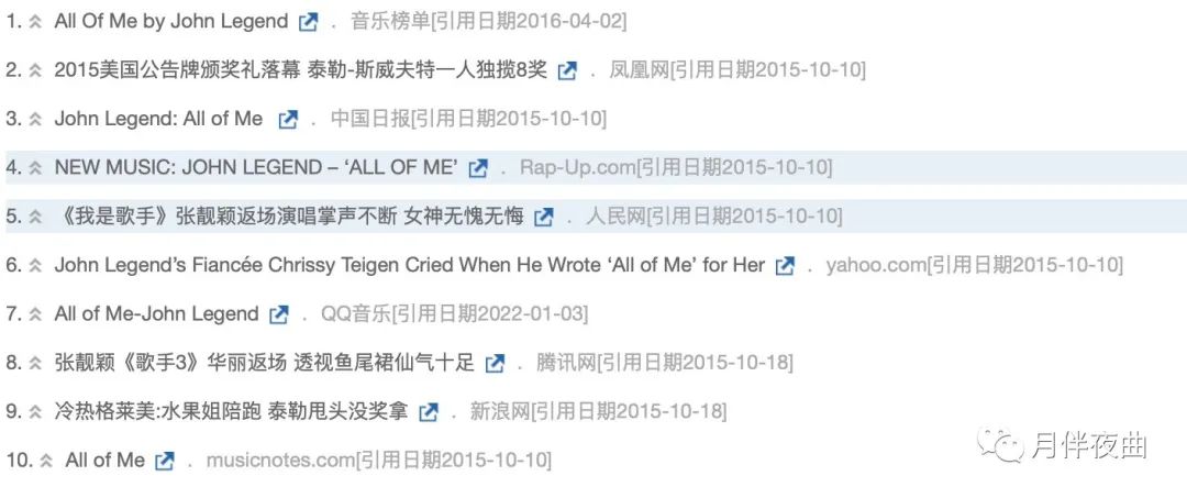 2014年5月16日,《All Of Me》登上公告牌百强单曲榜榜首,成为“约翰传奇”在该榜单的首支冠军单曲。《All Of Me》也在澳大利亚、比利时、加拿大、英国等八个国家登顶。2015年,该歌曲获得“2015美国公告牌颁奖礼最佳流媒体歌曲奖和最佳电台歌曲奖。