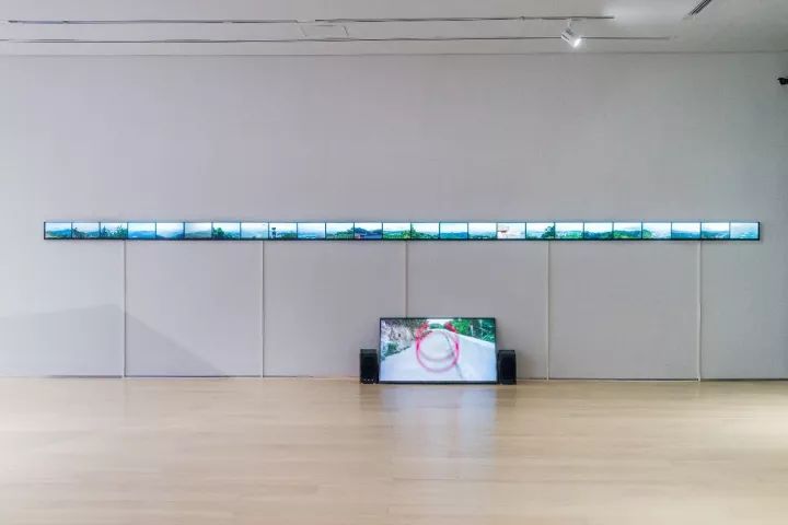李明《直线,风景》,26通道高清录像,彩色,有声,尺寸可变,2014-2016年