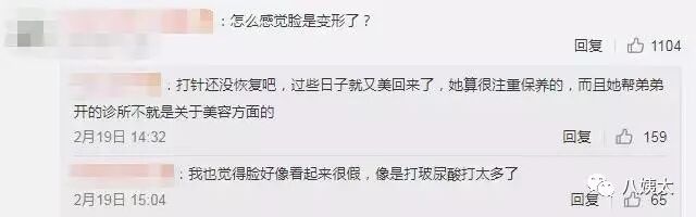 有网友表示感觉变形了,看起来很假,似乎是打针打多的后遗症↓↓↓