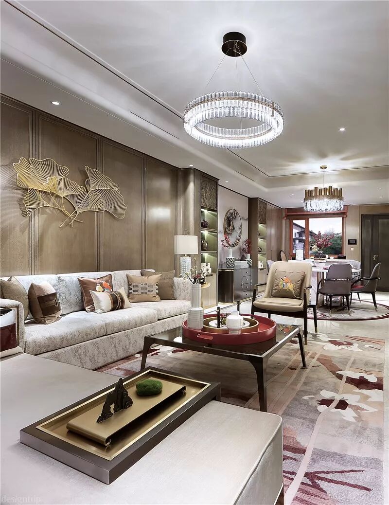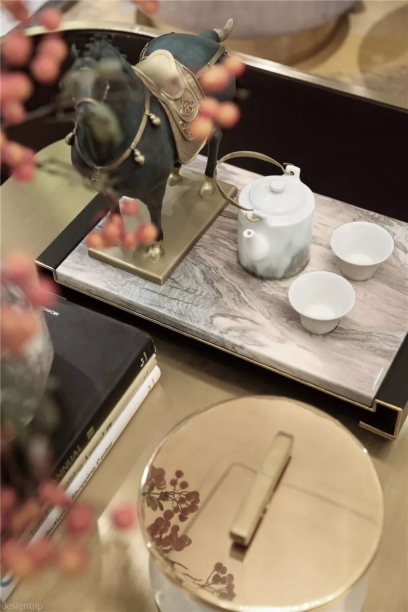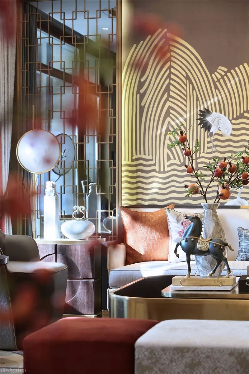 在对异族文化的态度上,盛唐人同样表现出宽阔的气派和态度。在洋溢青春热度的盛唐,人的精神亦焕发出青春朝气,人的素质表现出高品位和多才多艺的特征。是向上的、朝前的,而不是衰退、老气横秋。本案正是依托唐代美学精神,展现东方雅奢的风尚新中式。