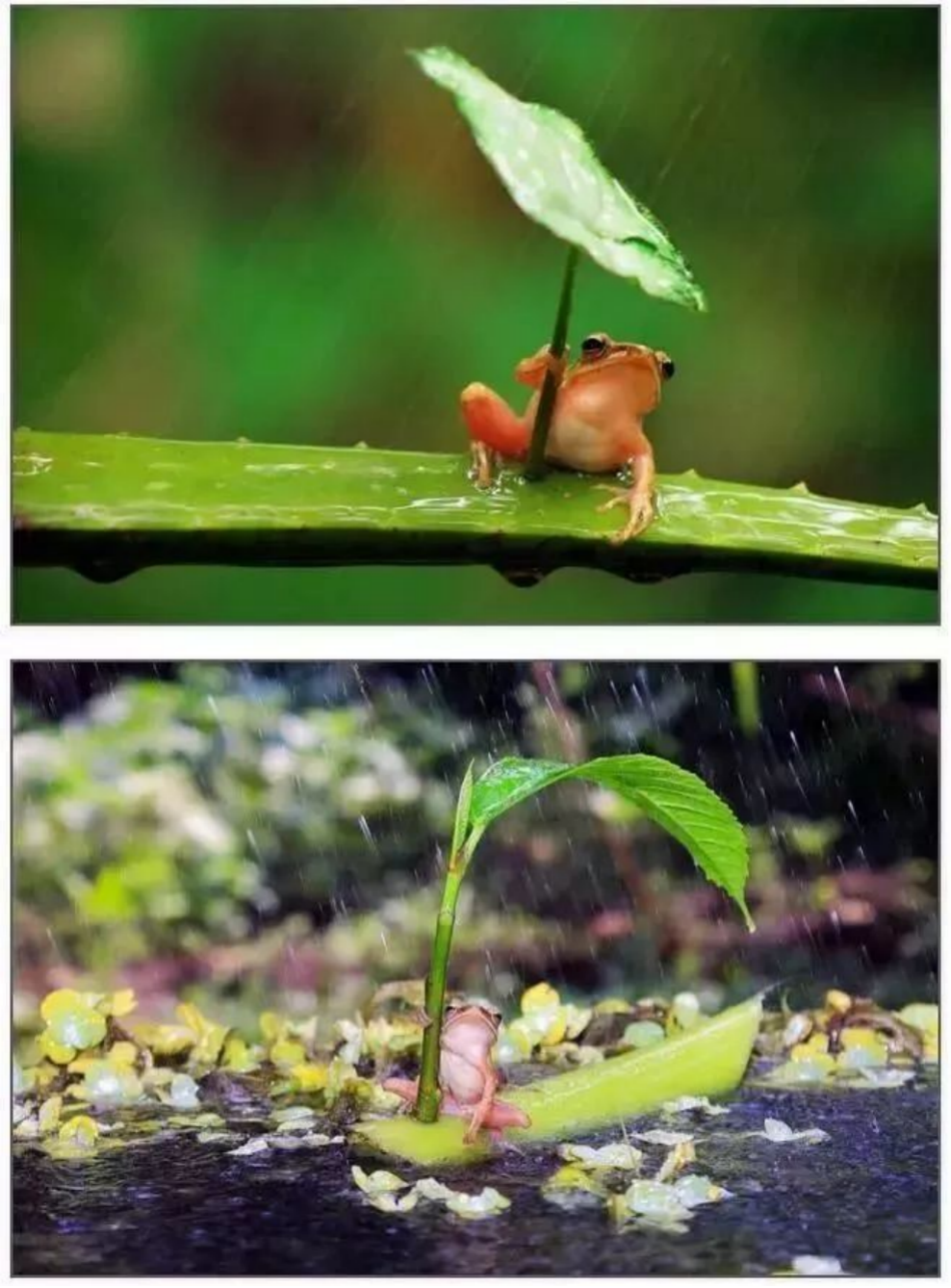 当小青蛙撑起荷花叶伞,这一刻仿佛让人充满了对大自然雨季的热爱。