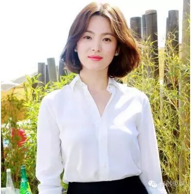 宋慧乔,也是白衬衣配黑裙,红唇搭白色珍珠耳环,十足女神范。