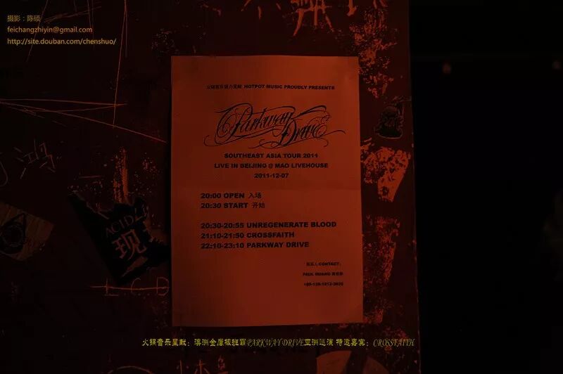 2011年12月5日,火锅音乐呈现-Parkway Drive + Crossfaith。 这场演出可以算是火锅音乐史上最经典之一。MAO很少有两队同等大牌且风格类似的国际大团同台……