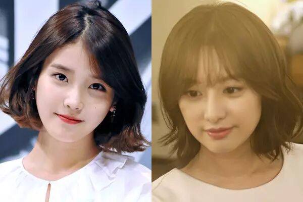 当发尾短于下巴时(左图),她较长的面部中下庭,就变得尤为抢眼。换以长发(右图),脸型则呈现较为和谐的模样。