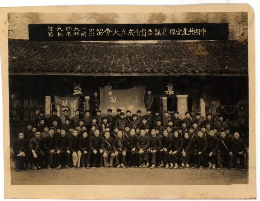 1949年劳动节中共福鼎县委成立大会合影,前排左十为林永中