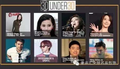美国知名财经媒体福布斯发布了亚洲地区30位30岁以下商业领袖“Forbes 30 Under 30 Asia”榜单,这是福布斯首份以亚洲作为评选范围的榜单,涉及十个领域的30岁以下的亚洲领军人物。这十个领域包括艺术、制造和能源、体育和娱乐、消费 者科技、金融和投资、企业科技、市场和传媒、医疗和科研、公益创业以及零售和电商。