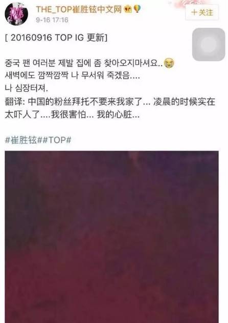 在TOP吸毒的前一个月,他就在INS上帖出了长文,警告中国粉丝:“你们都不要老来我家了,太吓人......”