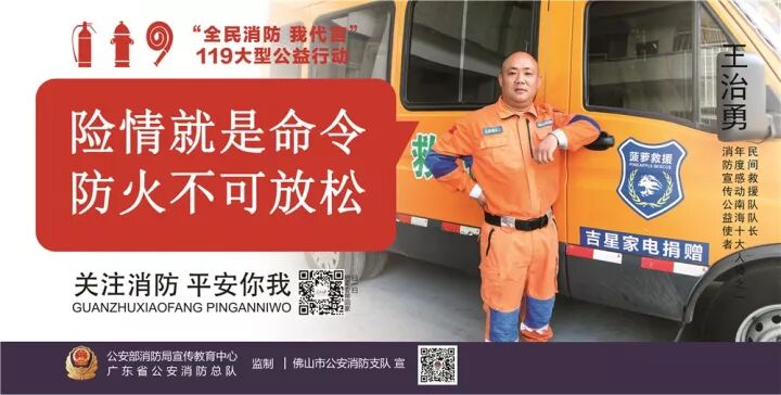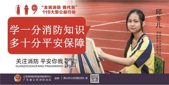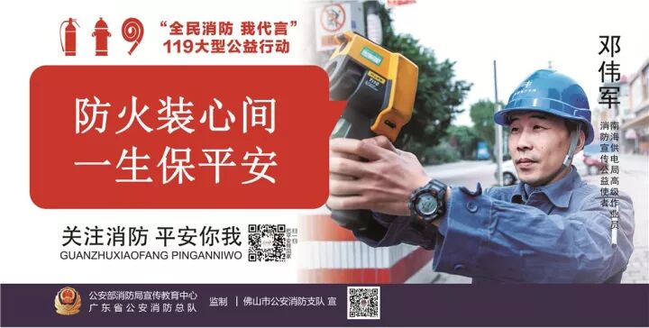 9月底起,为迎接119消防宣传月,发动社会各界进一步关注消防、学习消防、参与消防,推动落实单位消防安全责任,提升公众消防安全素质,佛山市公安消防局在全市范围内组织开展了“全民消防我代言”大型公益行动。