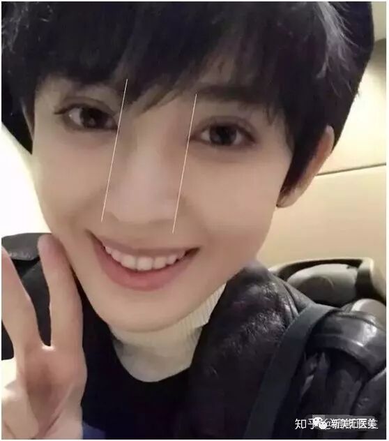 夺目的平行双眼皮,眉眼间距非常近,眼角尖锐