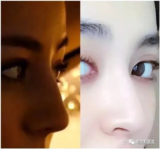 向眉心和鼻梁两个方向的过度都比较平缓,