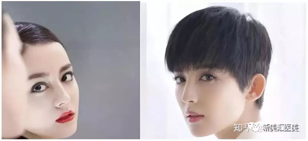 热巴的额角开阔,发际线高,整个额头的横向距离很大。