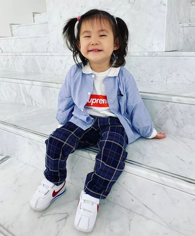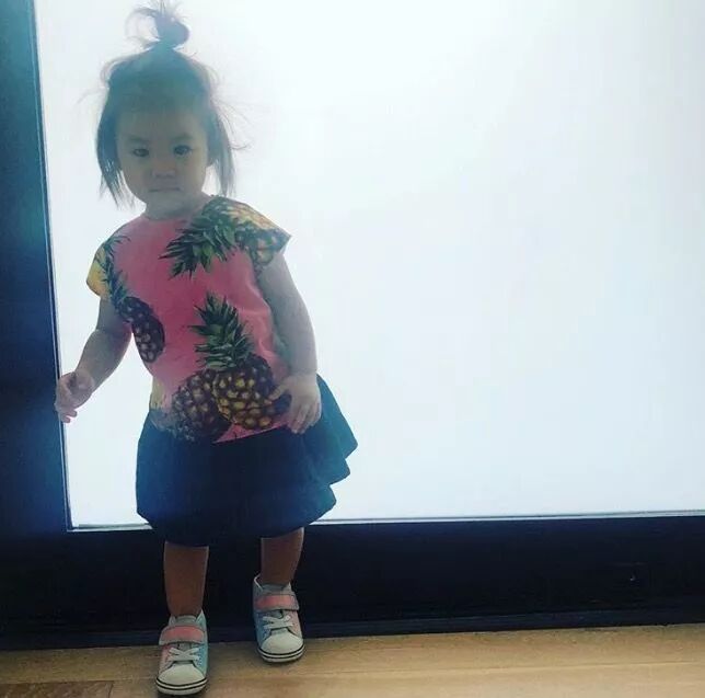 女儿Alaia虽然没有望镜头,但也非常可爱