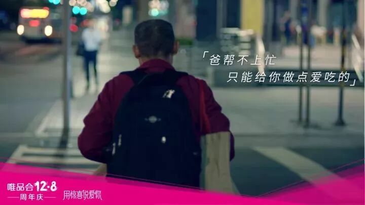 只是看到结尾时,会有点跳戏的感觉,唯品会12.8周年?哪尼?? 相对于内容呈现的调性和采用的音乐,总感觉唯品会这样的电商平台有点hold不住呀!必定周总的歌和片子的内容都挺偏向80后,而唯品会要更加的年轻化一些。