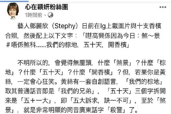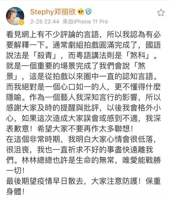 鄧麗欣發文稱大家誤解了其意思