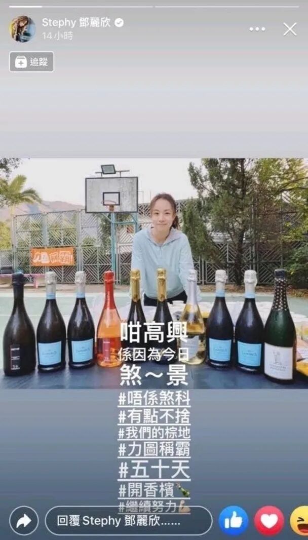 與十支香檳合照並貼文: