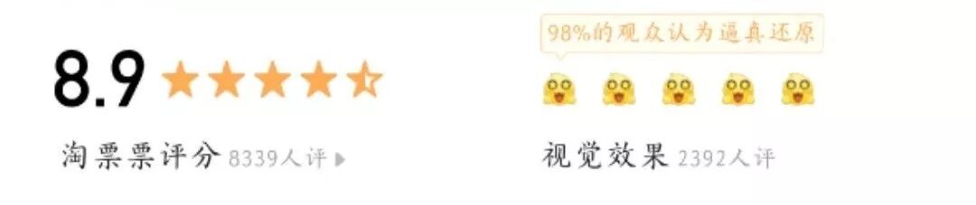 在各大购票网站上,评分都达到了近9分的高分,视觉效果叫人啧啧称奇。
